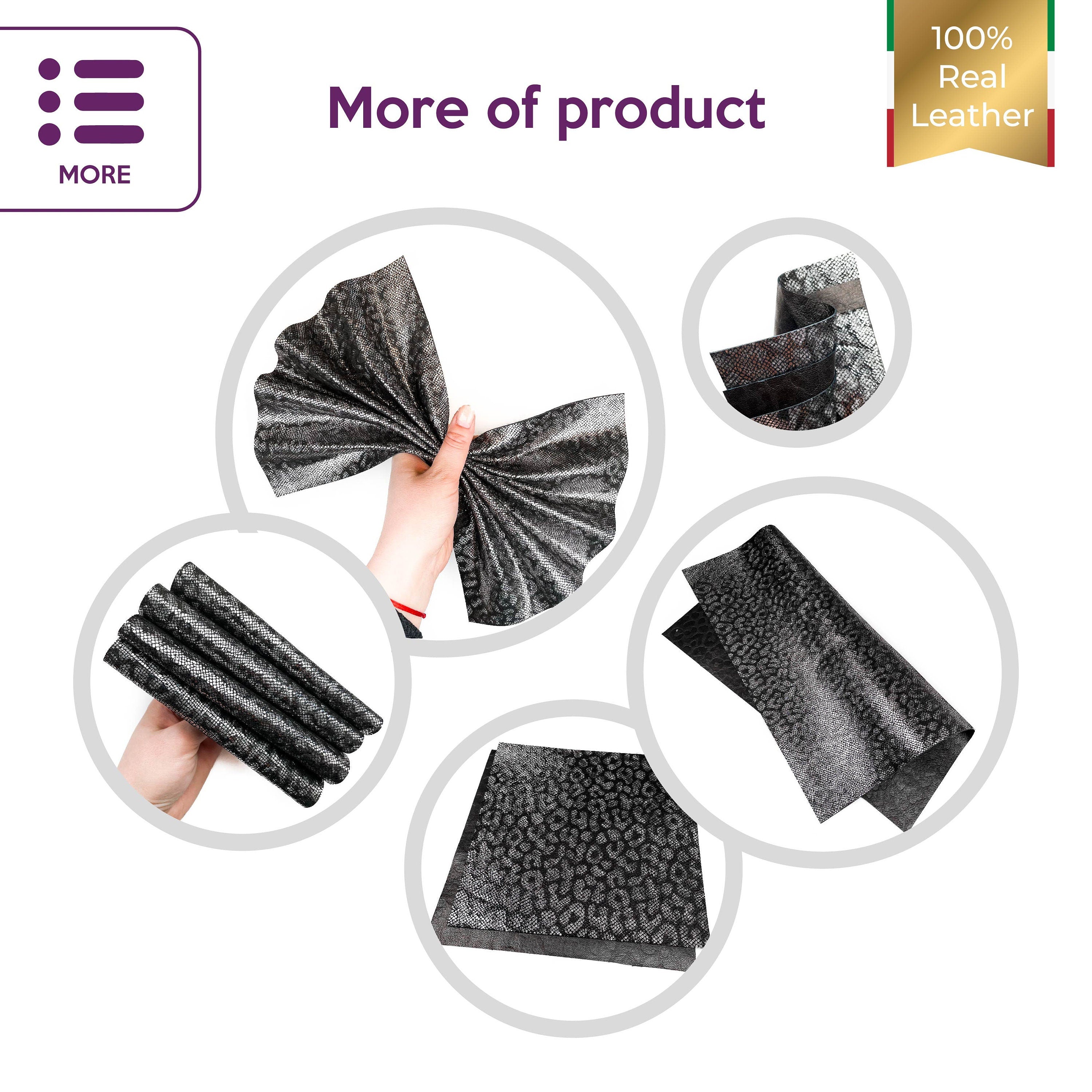High-quality lambskin leather sheets with black leopard print. Pre cut pieces silver shine for your best projects! Our mission is to provide only the best quality Italian leather samples to other leather workers, crafters of all kinds, small businesses or Etsy shop for your own projects.