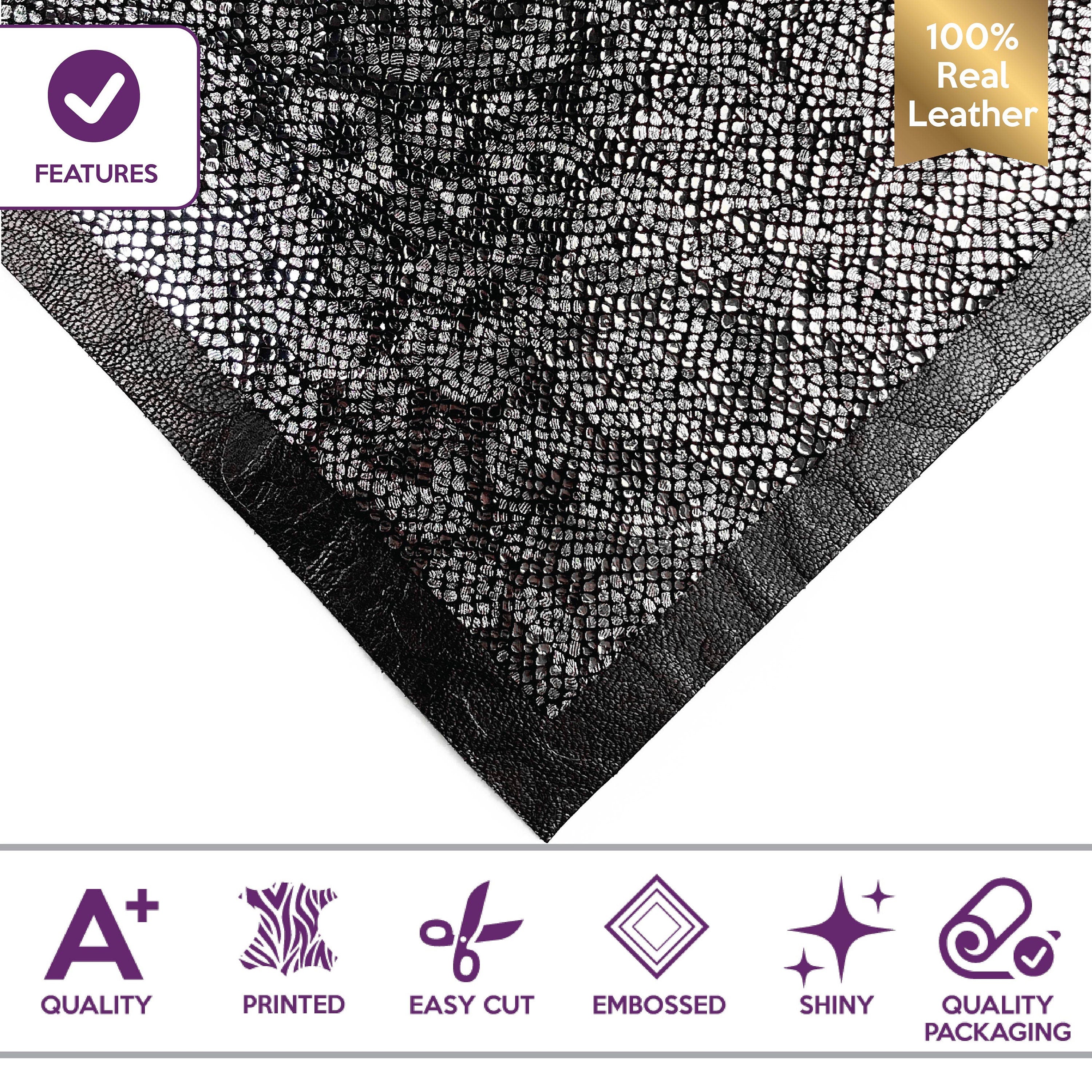 - Leather (size) pieces with black leopard print. Shiny lambskin scraps for crafting. Leather will be perfect for all kind of DIY jewelry. Leather with silver shine all over. High quality Italian lambskin.
