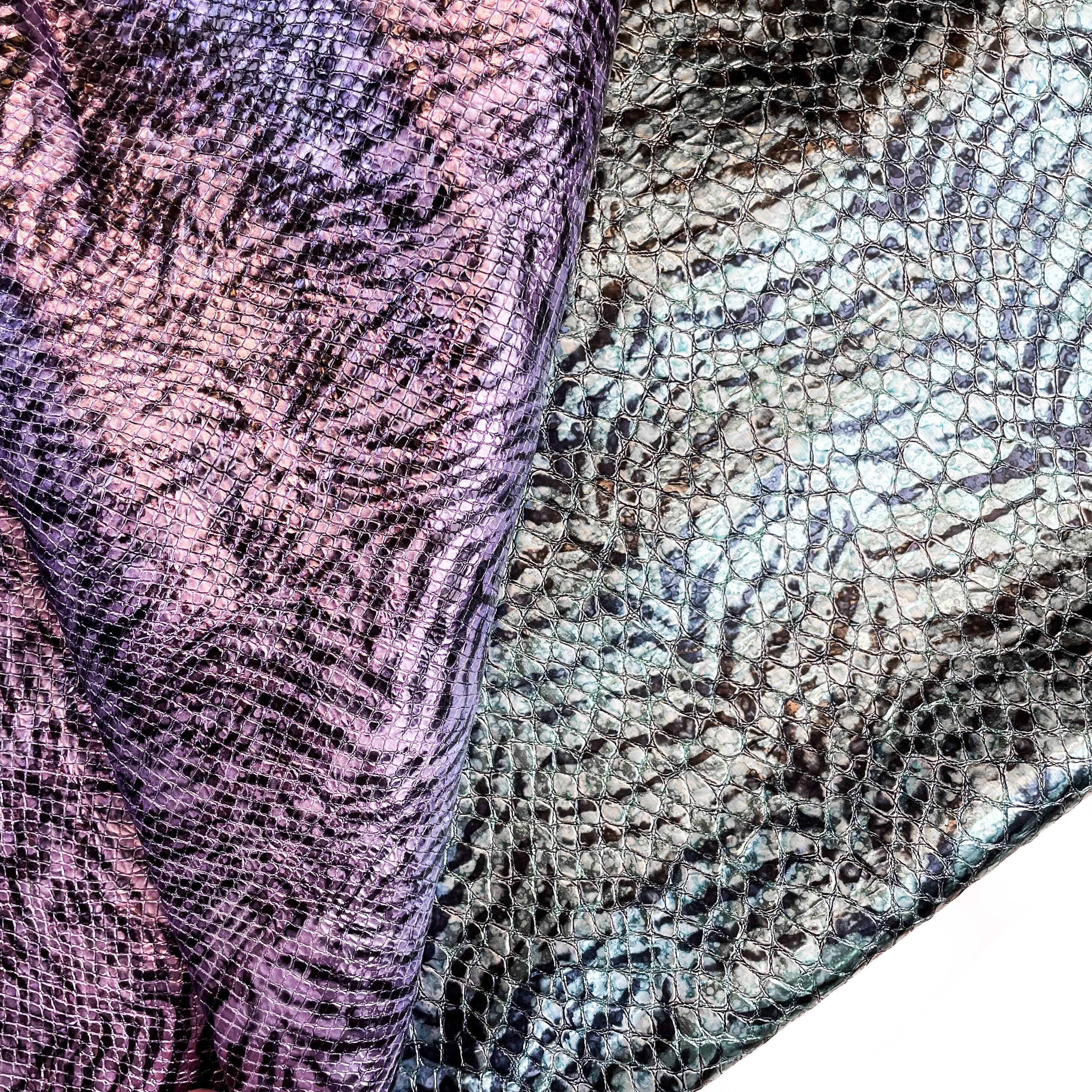 High-quality lambskin leather fabric hides with shiny metallic zebra print all over. Unique and shiny leather for your projects!! Our mission is to provide only the best quality Italian leather to...