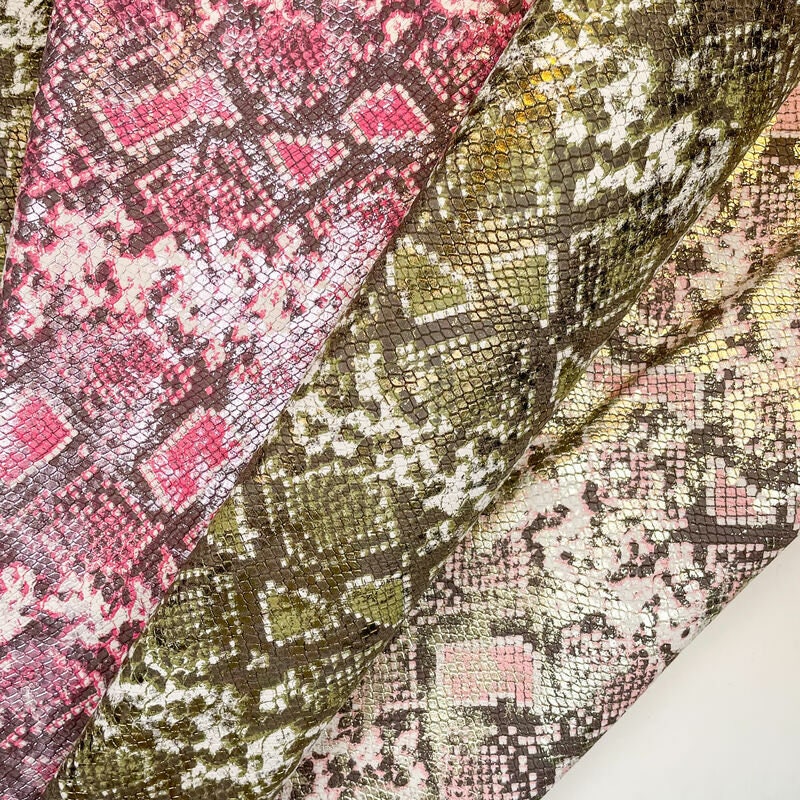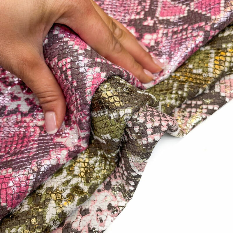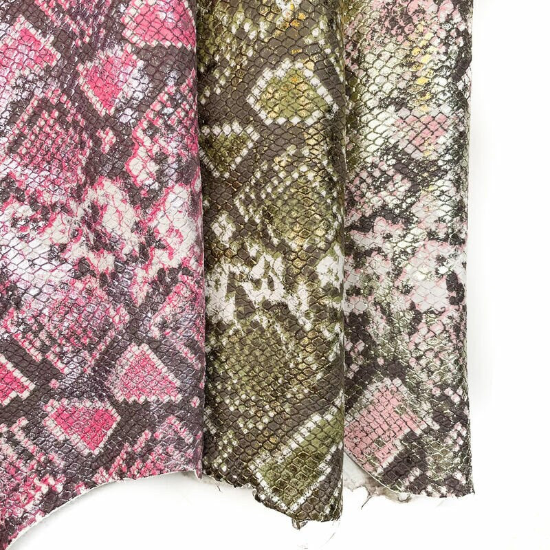 High-quality lambskin leather with shine and snake print. Unique embossed leather hides for your best projects! Our mission is to provide only the best quality Italian leather to other leather workers, crafters of all kinds, small businesses, or Etsy shop for your own projects.