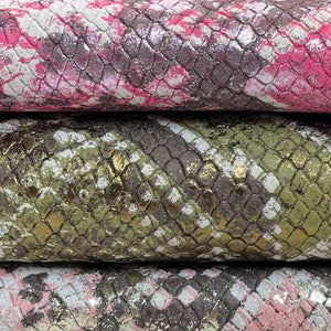 Shiny Snakeskin Print Lambskin Leather 0.7-0.9mm/1.75-2.25oz / SNAKE MIX 1376