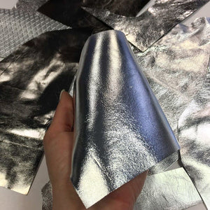 Colors: Different SILVER color metallic lambskin off cuts (pure silver, dark silver, may contain different textured silver leather pieces)