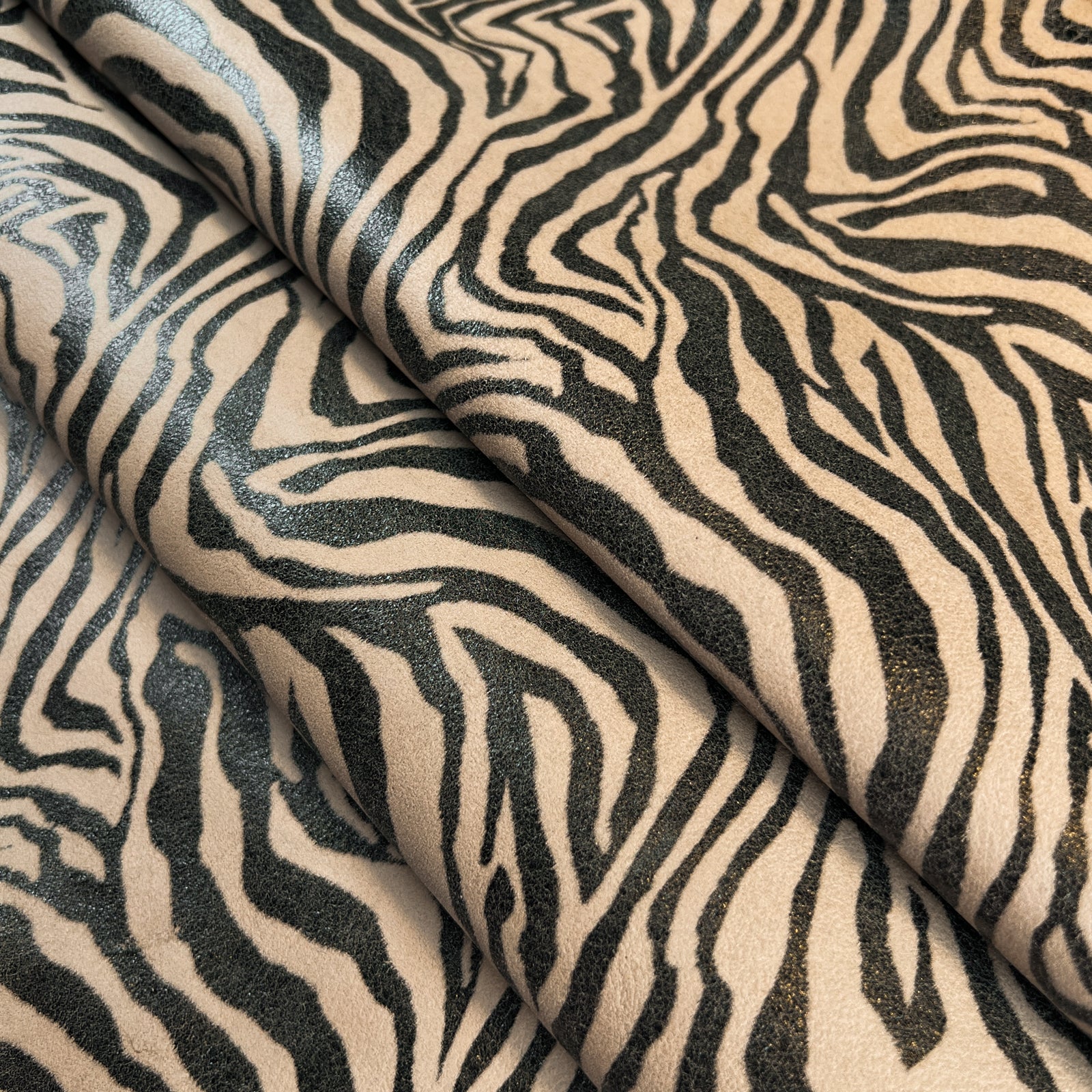 Beige lambskin leather with always trending ZEBRA print. Very soft suede leather hides. Amazing leather for bag and purse crafters will be long-lasting. Our mission is to provide only the highest quality Italian leather to other leather workers, crafters of all kinds, small businesses, or shops for your projects.