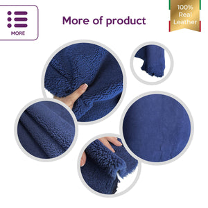 - Winter season is here! Dark blue short fur shearling. Backside is soft blue suede/velour leather. Perfect for soft teddy coat! Make outstanding design with the warmest and softest material. Genuine lambskin from the best Italian tannery. Perfect leather for sewing. Thin fabric for shearling 1.4 mm / 3.5 oz
