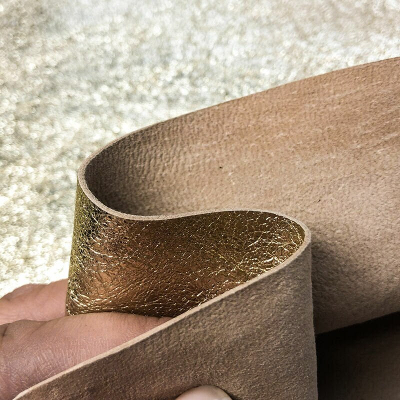 High-quality metallic lambskin leather in light gold color. Crunchy metallic leather material for your best projects! Our mission is to provide only the best quality Italian leather to other leather workers,...