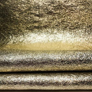 High-quality metallic lambskin leather in light gold color. Crunchy metallic leather material for your best projects! Our mission is to provide only the best quality Italian leather to other leather workers, crafters of all kinds, small businesses, or Etsy shop for your own projects.