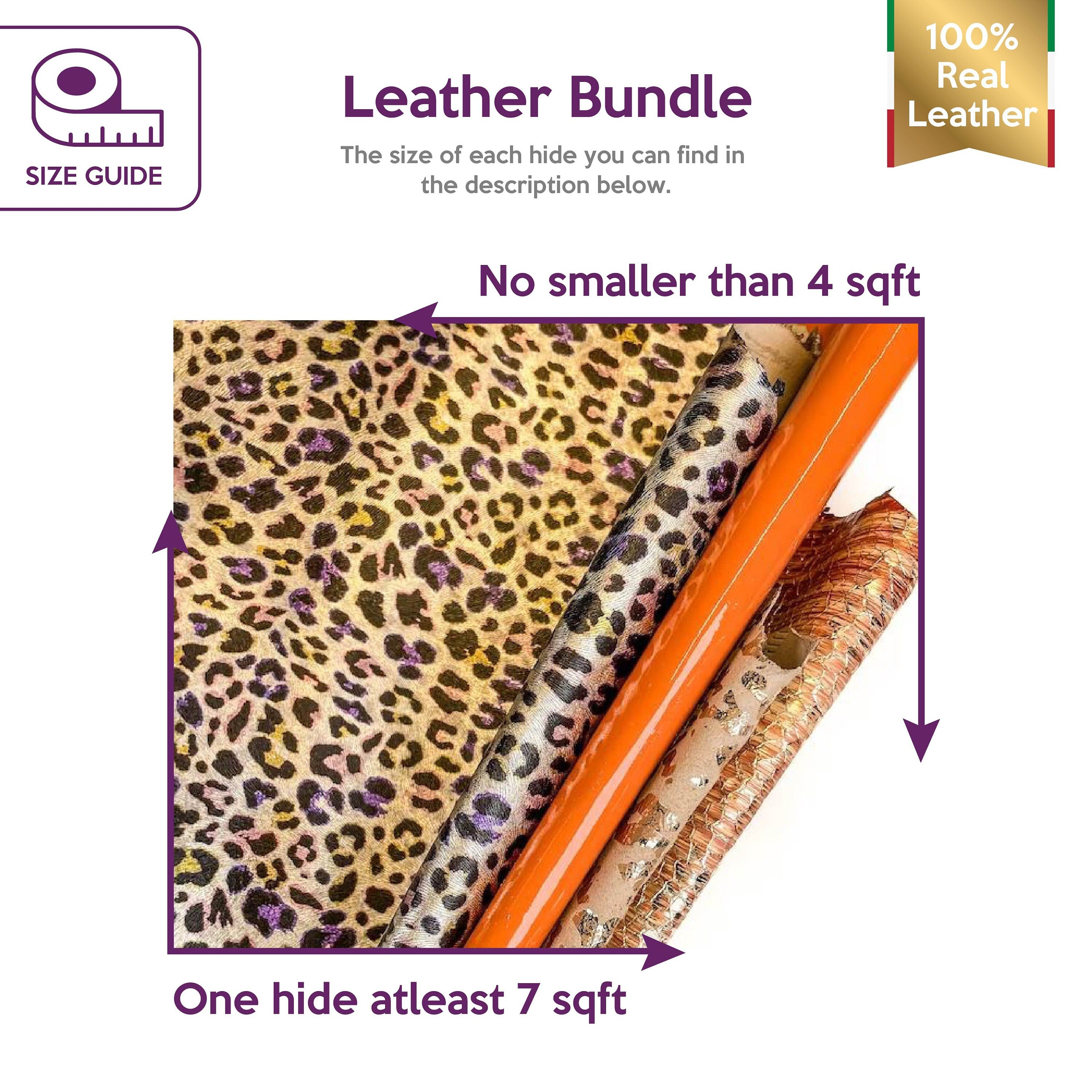 Four different leather pieces as pictures. Each hide's size is different. Amazing and gorgeous material for your best projects! Our mission is to provide only the best quality Italian leather samples to other leather workers, crafters of all kinds, small businesses, or Etsy shops for your own projects.