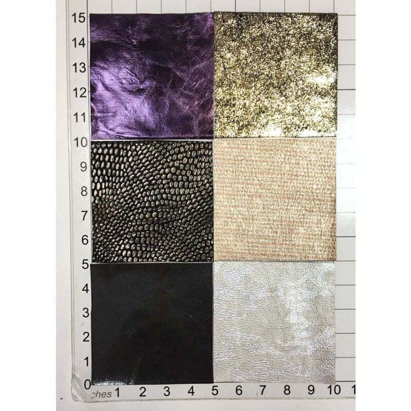 -Selection of 6 or 12 leather pieces in different colors and shades, size - 6x6 inches -Please note that genuine leather is natural and part of an animal, scars and imperfections are all part of its character and personality. As every animal is different there aren't too identical pieces of leather in the world.