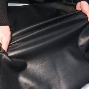 SHINY Black STRETCH Leather is Elastic Real Sheep Leather in thickness 1.75oz / 0.7mm (thickness may vary within range of 0.1-0.2mm)