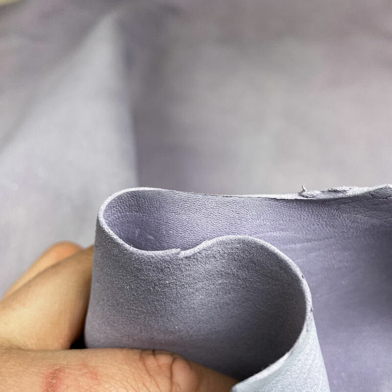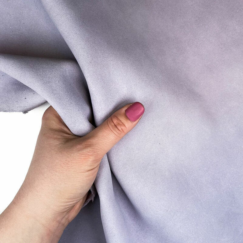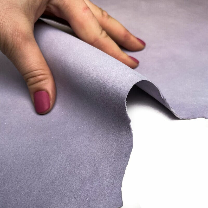 - Soft suede leather pieces with shine. Viola velour material. Natural lambskin hides from the best Italian tannery. Perfect leather for sewing.
