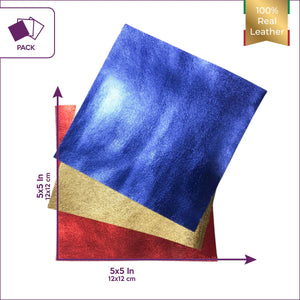 Three Metallic Leather Pieces 5x5in - Blue, Gold, Red Thin