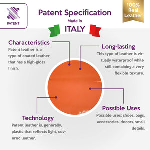 High-quality lambskin PATENT leather. Orange color leather pieces for your best projects! Our mission is to provide only the best quality Italian leather to other leather workers, crafters of all kinds,...