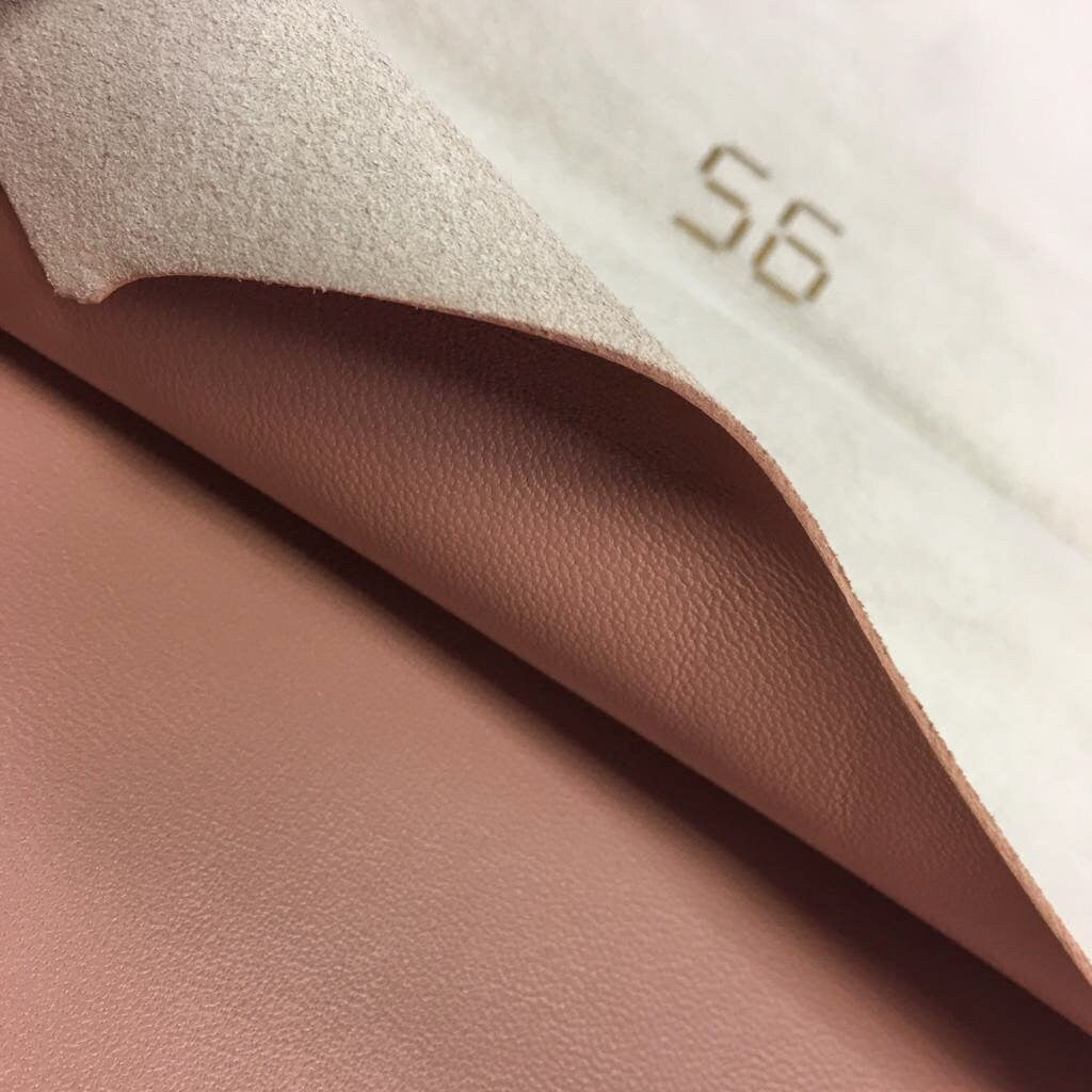 Light beige backside. Smooth, pliable A grade leather with just a little bit of shine.