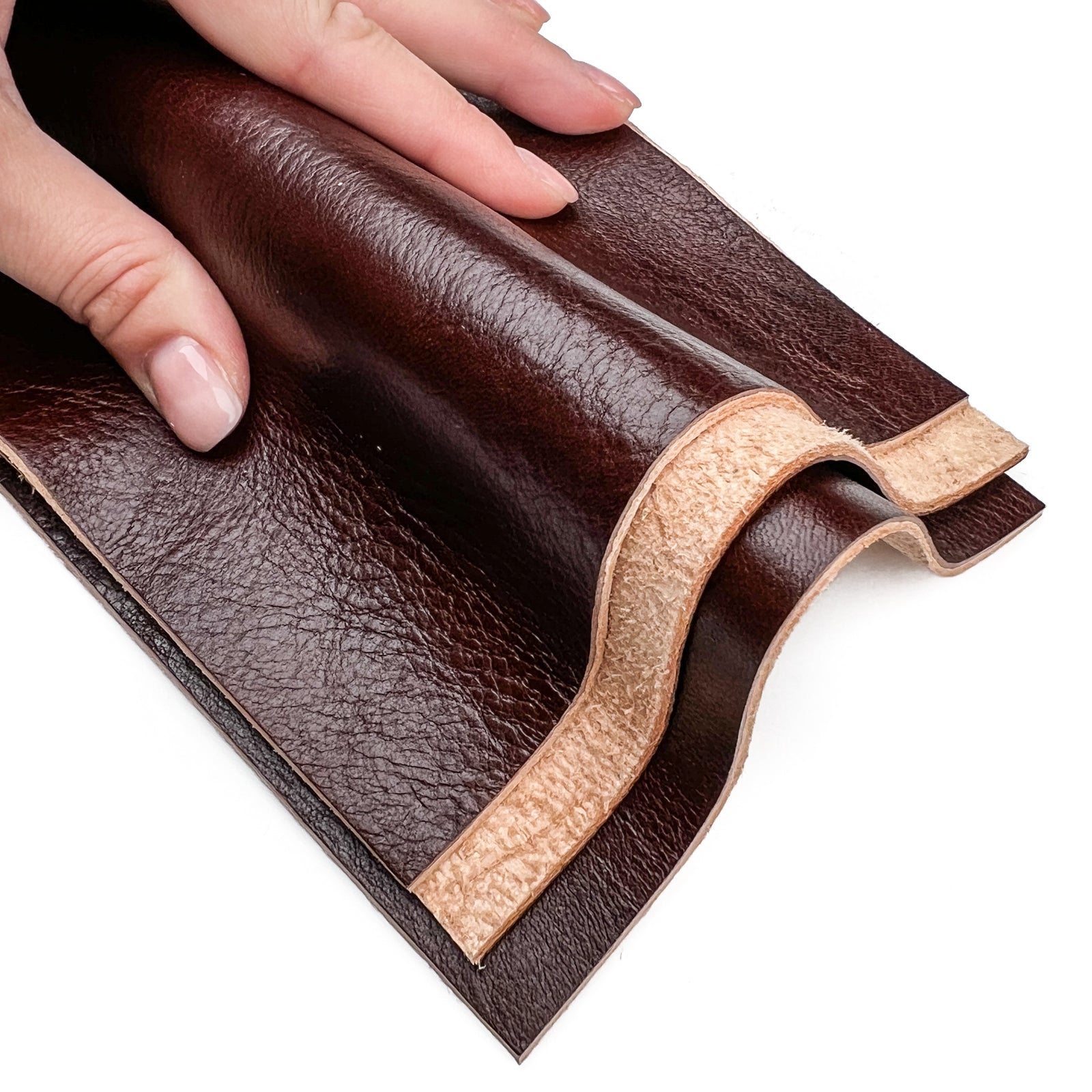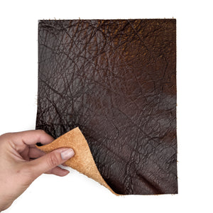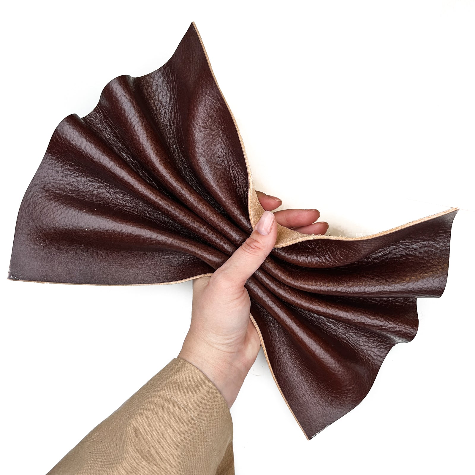 Brown Vegetable Tan leather sheets with texture. The leather fabric has a textured finish. Amazing leather for bag and purse crafters will be long-lasting. Our mission is to provide only the highest quality Italian leather to other leather workers, crafters of all kinds, small businesses, or shops for your own projects.