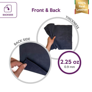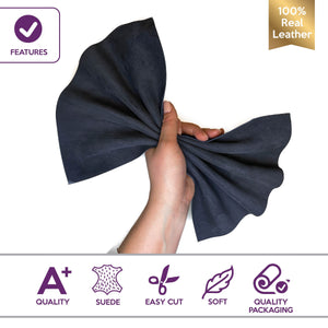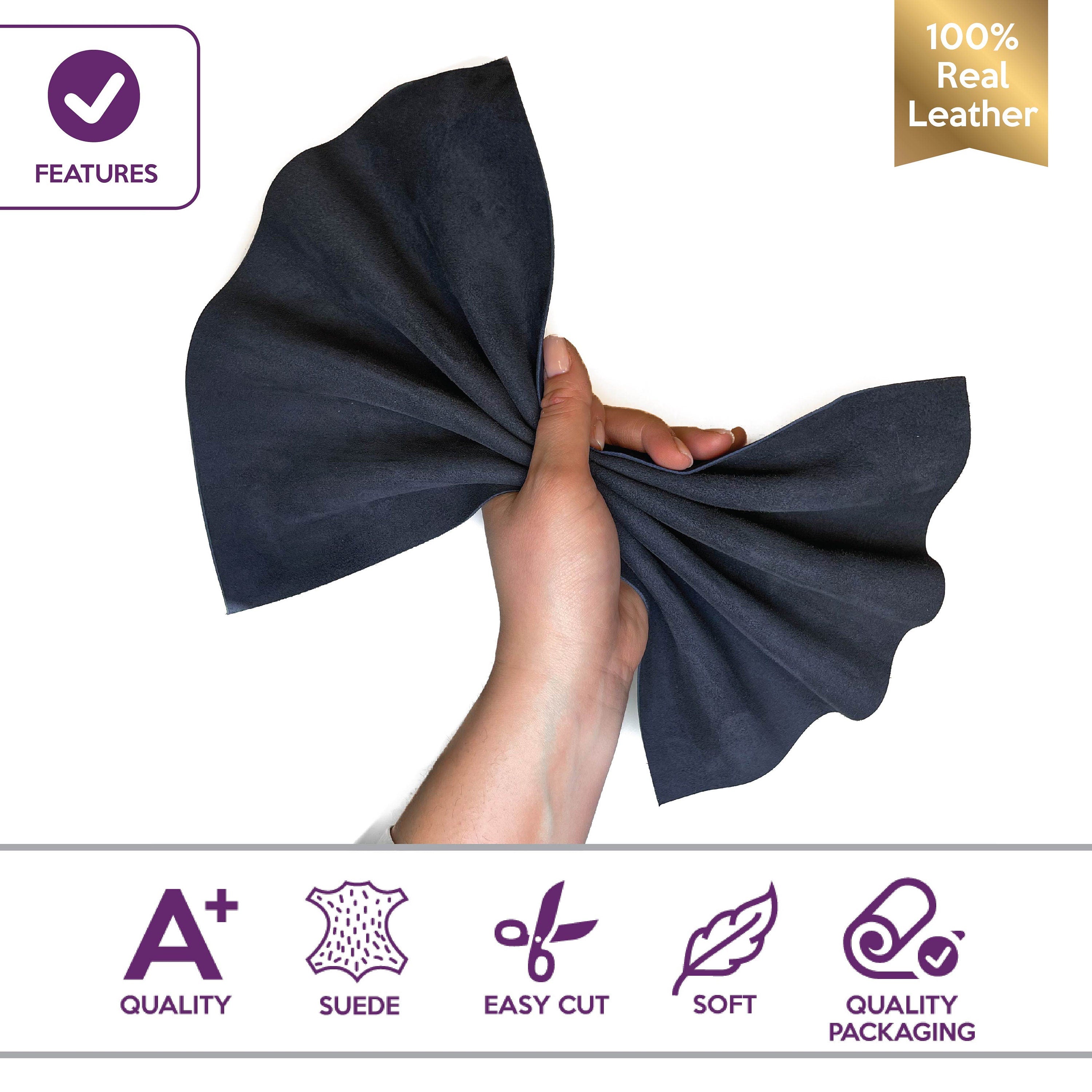 - Soft dark blue suede leather (size) sheet for sewing. Soft, pleasant and really nice velour material scraps. Colored throughout - back is the same color as front. Nice suede leather pieces, soft and rich color.