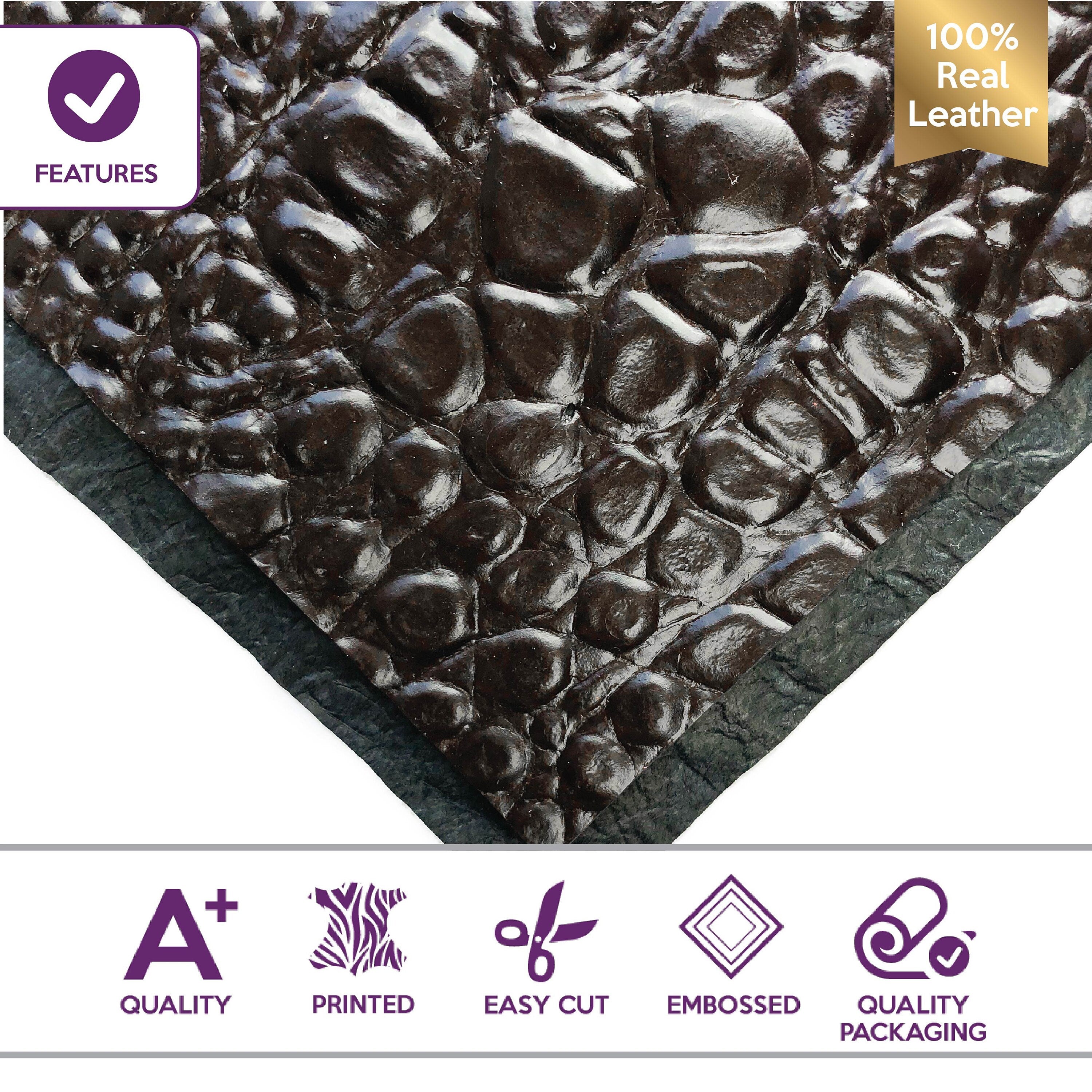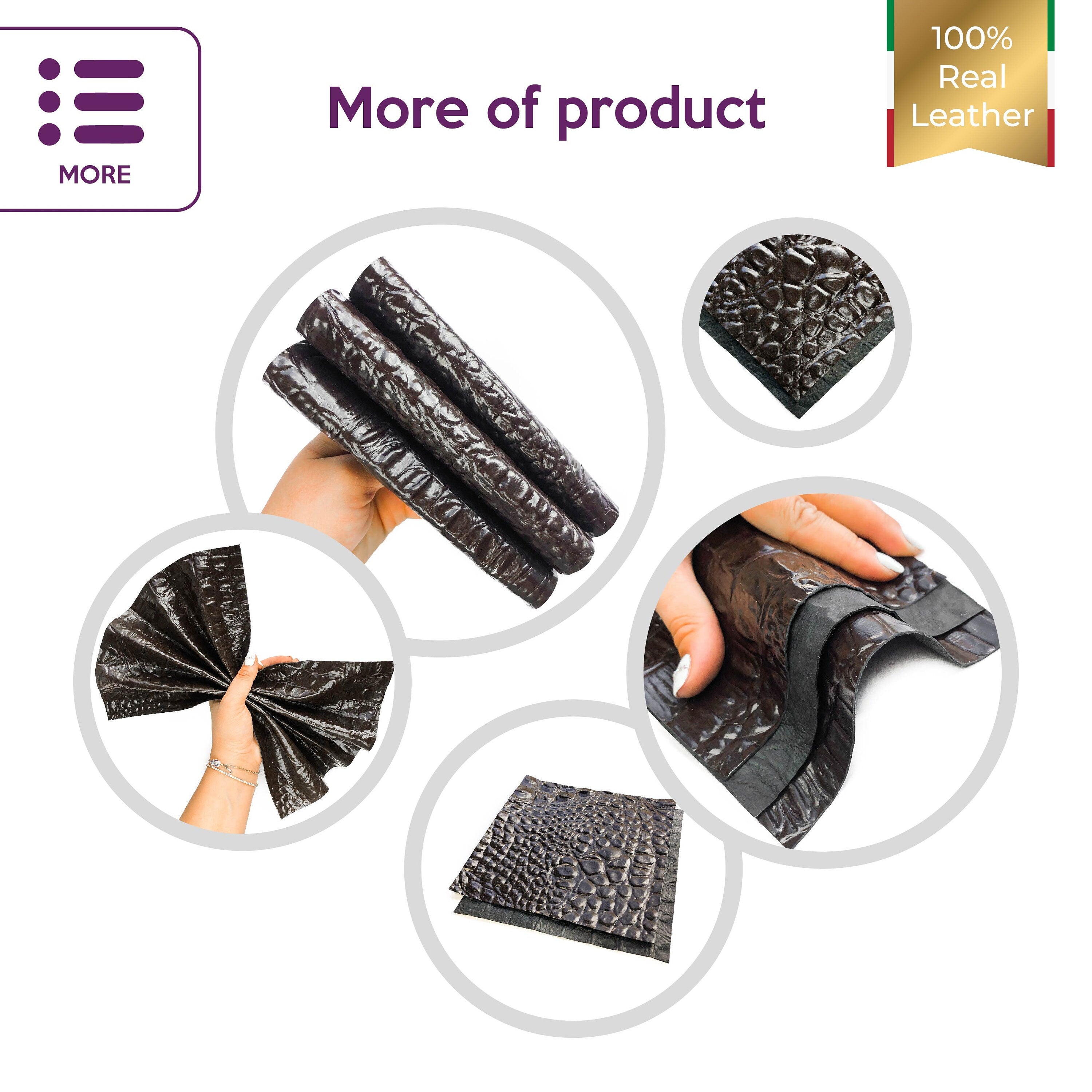 - These dark brown leather sheets are perfect for all kind of artwork of yours. Crocodile pieces are very pliable and perfect for all kind of accessories and garments. 100% natural Italian leather pre-cut sheets.