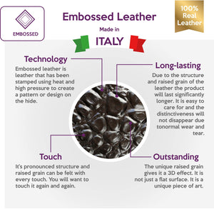 Please note that genuine leather is natural and part of an animal, scars and imperfections are all part of its character and personality.
