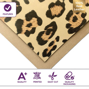 -Jaguar Leather print. Genuine Leather material for crafting. Fantastic Leopard skin print on lambskin leather. Italian quality Leather print for bag making, animal theme leather earring material. Wild and fashionable! Perfect for all your projects!
