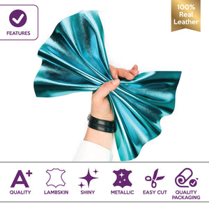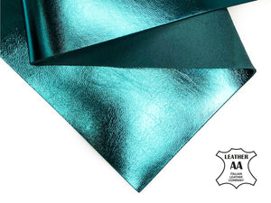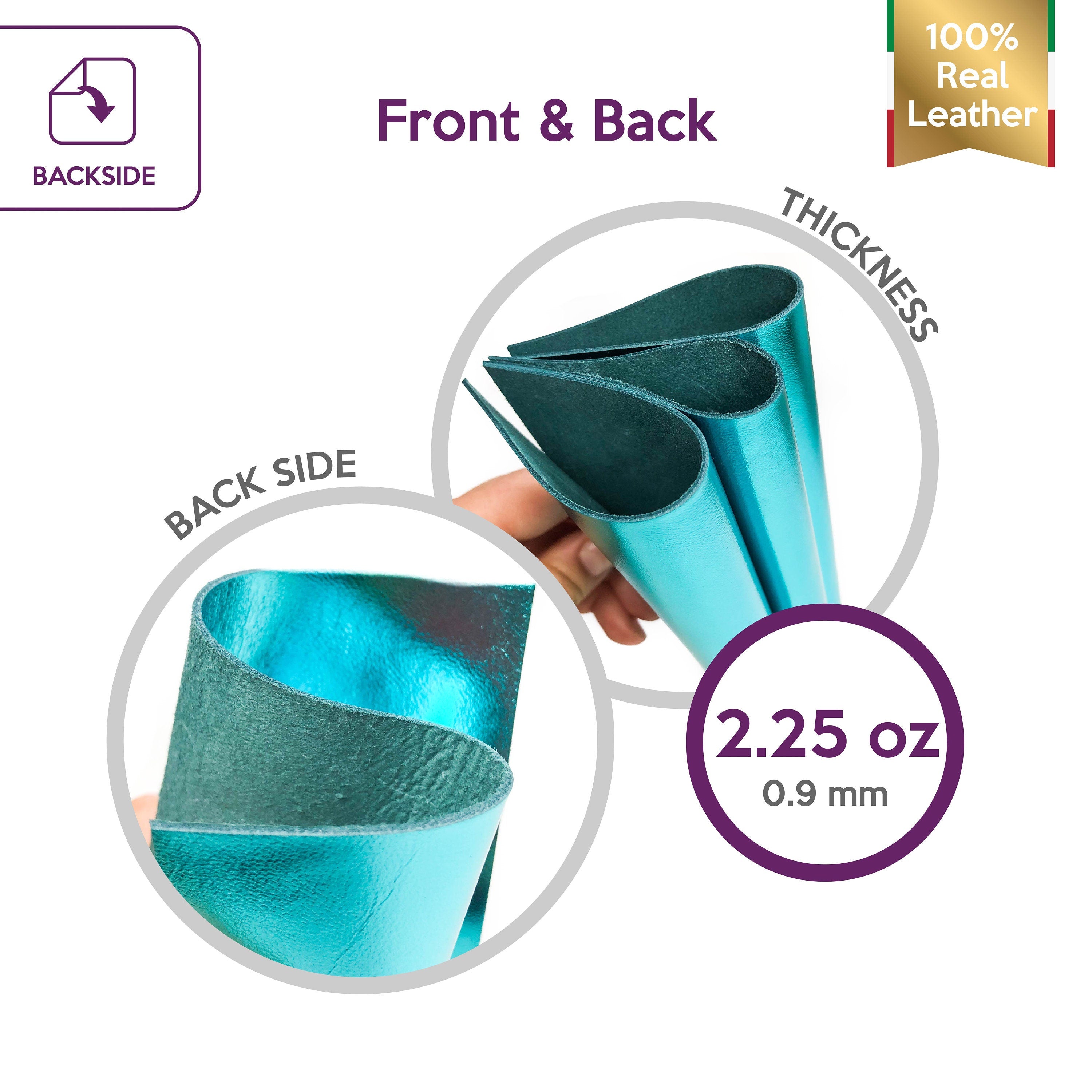 - Beautiful metallic leather pieces. Perfect sheets for DIY earrings and jewelry. Genuine lambskin scraps. Shiny unique leather. The backside is blue.
