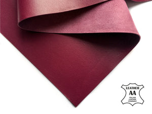 -Nice and quality burgundy leather sheets. Pretty quite lightweight and pleasant for touch, super soft and nice to work with. Backside is basically the same colour as the front - only lighter shade. Genuine Italian leather. Try it!