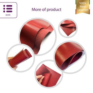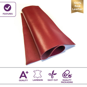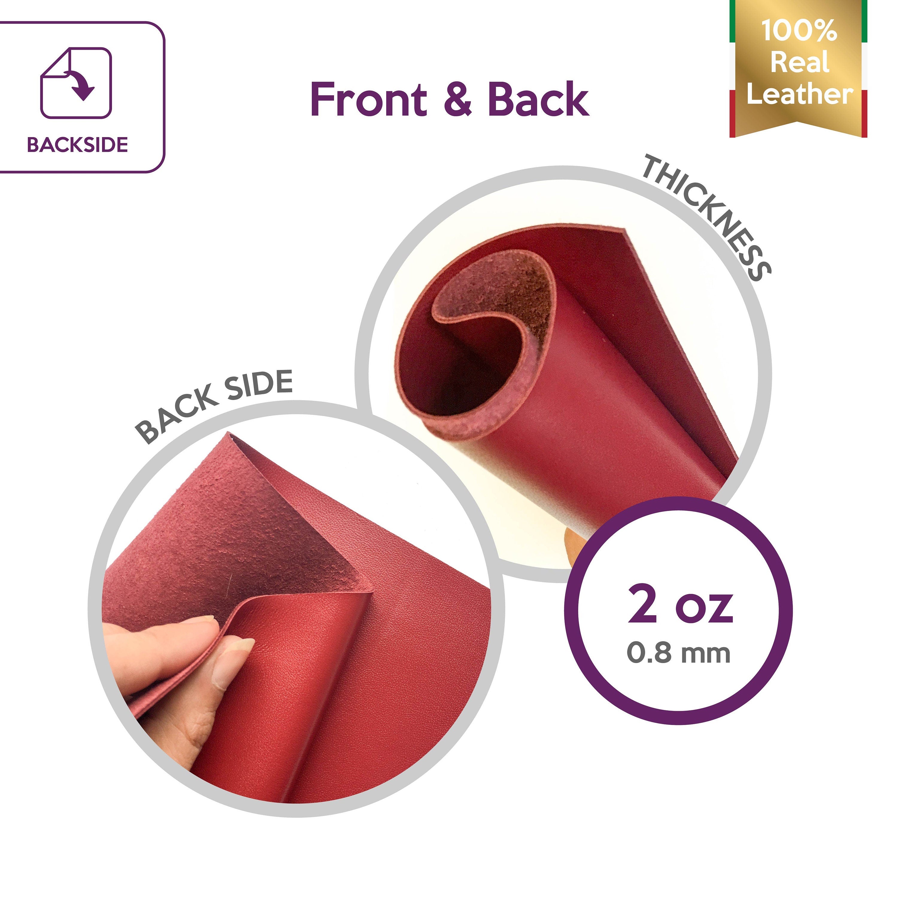 -Nice and quality burgundy red leather sheets. Pretty quite lightweight and pleasant for touch, super soft and nice to work with. Backside is almost the same color. Perfect for all kinds of leather projects!
