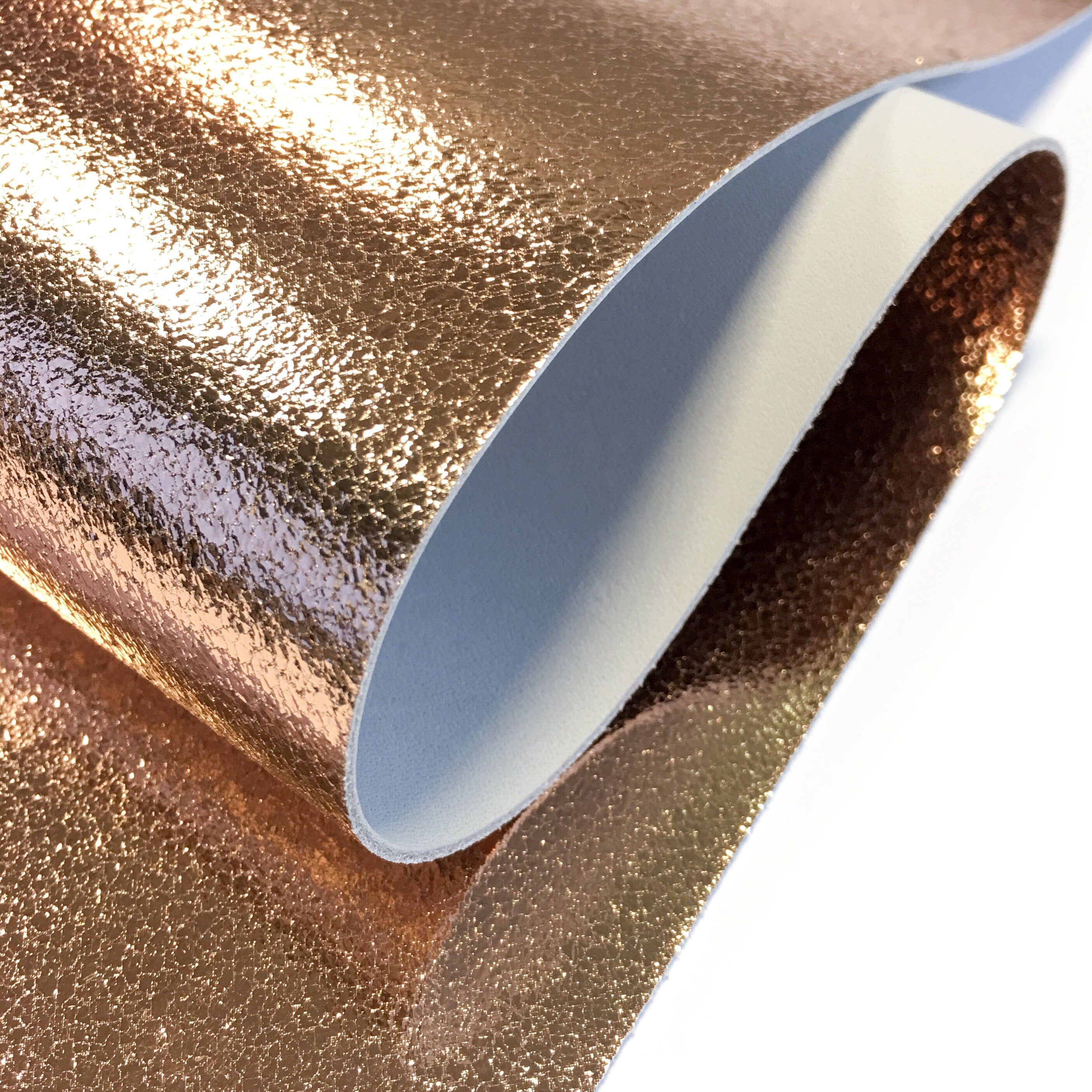 NEW ROSE GOLD SHEEP SKIN SHEETS 2.5 oz Supple and glossy rose gold metallic leather sheets with tiny crackle texture. Clean, light gray backside - with visible grain. Can be used...