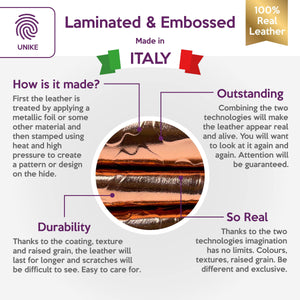 -Please note that genuine leather is natural and part of an animal, scars and imperfections are all part of its character and personality. As every animal is different there aren't too identical pieces of leather in the world.