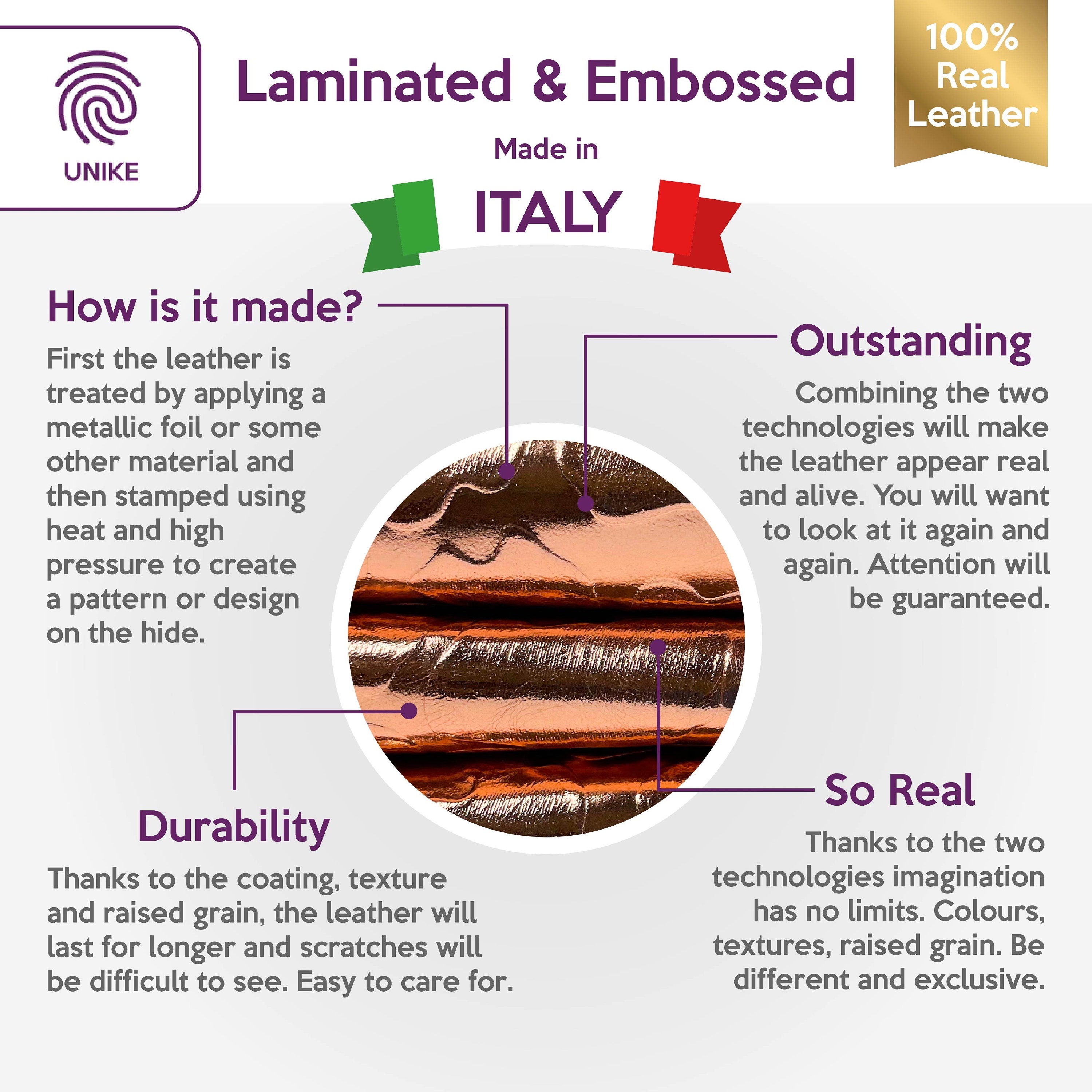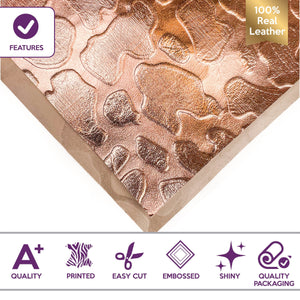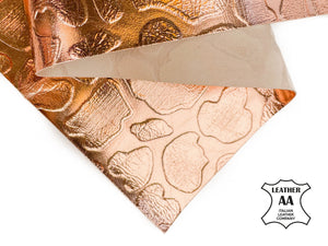 -Shiny ROSE GOLD lambskin leather sheets with stone print. Textured leather material. Rose gold leather print for sewing, handcrafting and leather accessories. One of a kind skin. Try it!