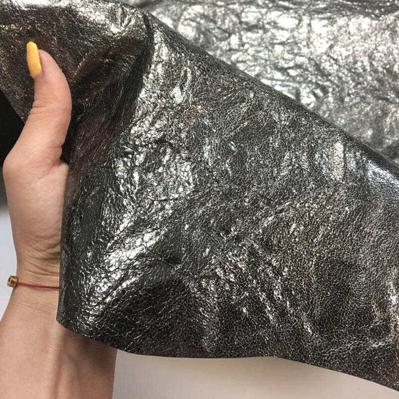 Dark Metallic Silver Lambskin 0.8mm/2oz / WRINKLED SILVER 808