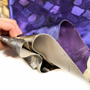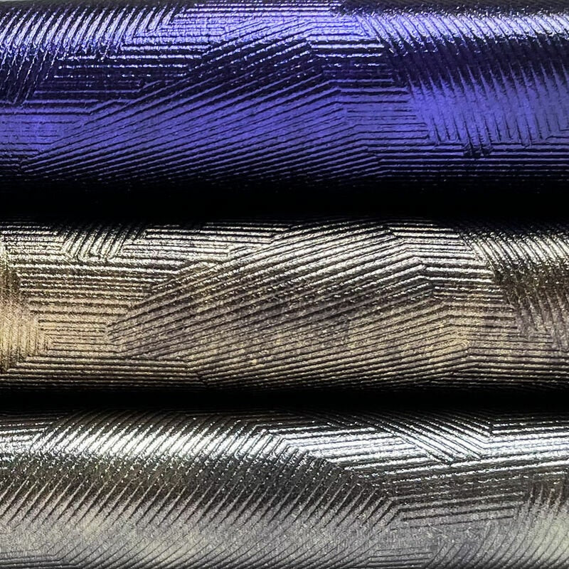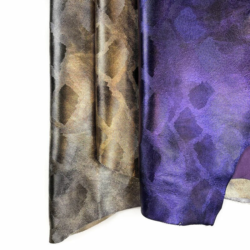 - Glossy leather for sewing. Textured leather with metallic shine. Natural lambskin hides from the best Italian tannery. Perfect leather for crafts and diy projects.
