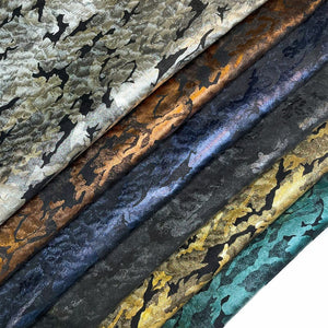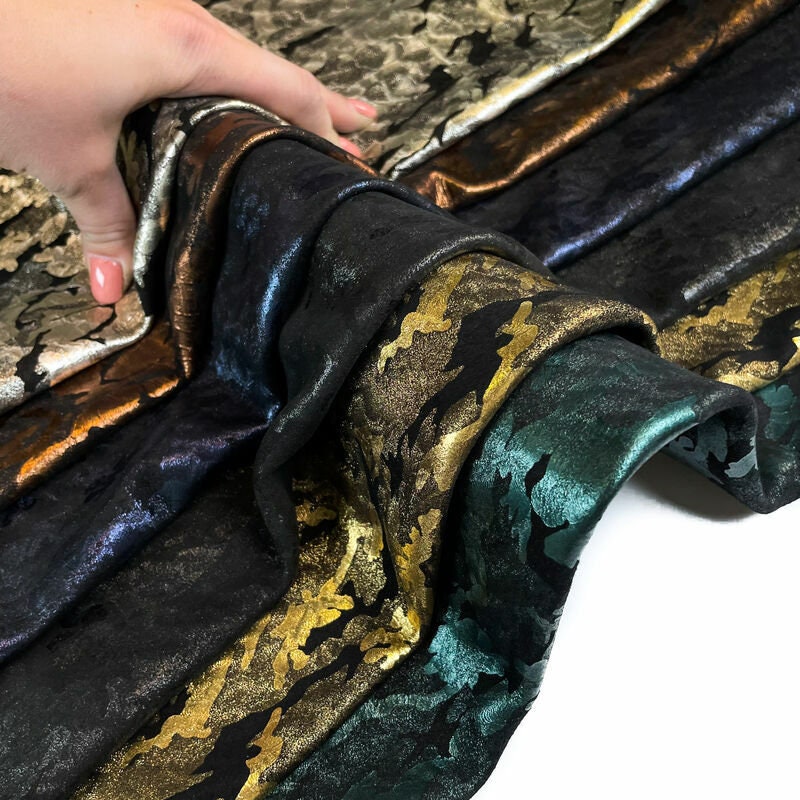 - Shiny metallic leather with camouflage print. Crafting pieces for sewing. Perfect metallic leather for any projects. DIY leather. Choose your color and shine bright!