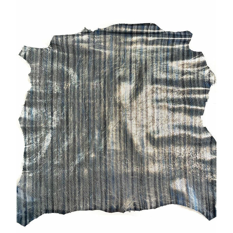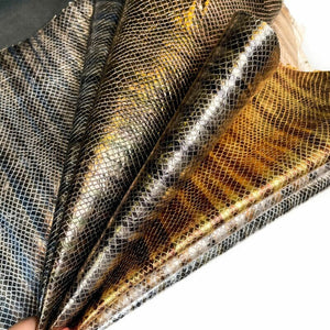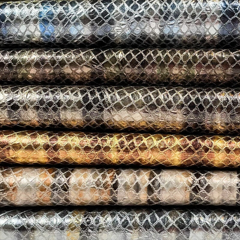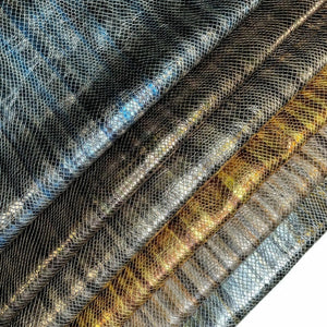 - Snakeskin print leather pieces with various metallic color stripes. Choose your color. Natural lambskin hides from the best Italian tannery. Perfect leather for sewing or crafting. Soft to touch, easy to fold.