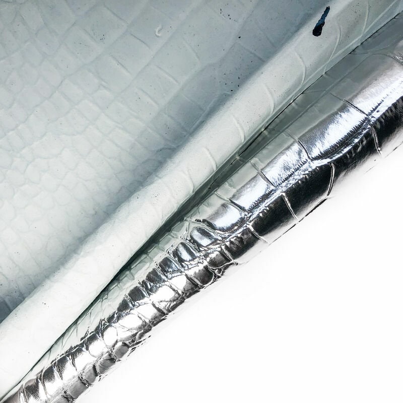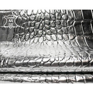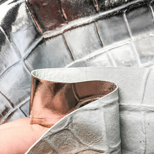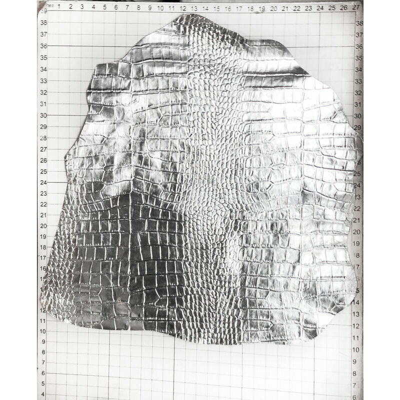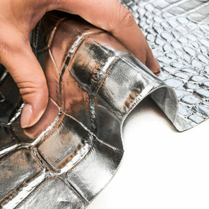 High-quality lambskin leather fabric hides in metallic silver color. Amazing crocodile print for your best projects! Our mission is to provide only the best quality Italian leather samples to other leather...
