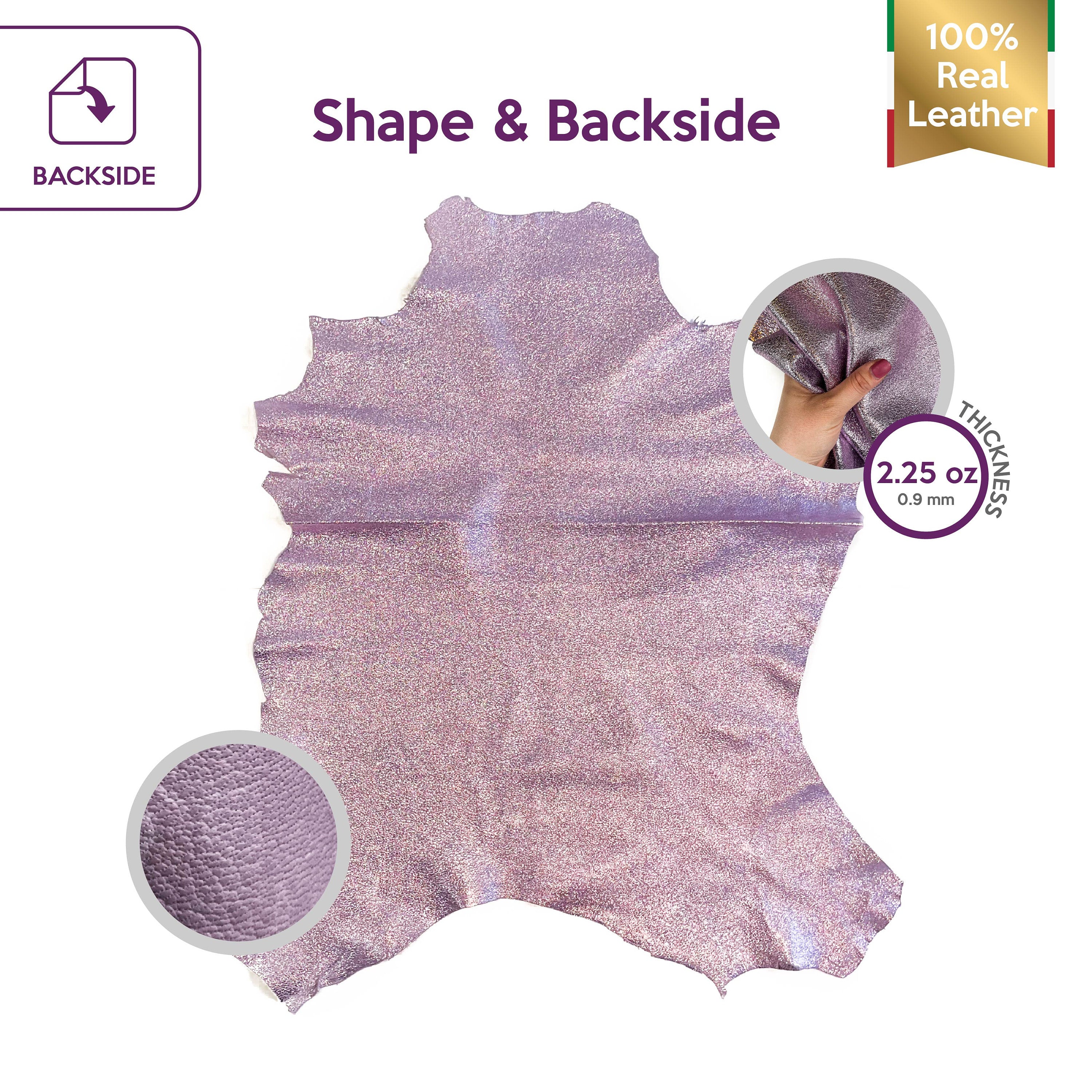 -Pink Metallic sheepskin leather hides. 100% Real Italian leather, shiny pink metallic leather, not too stiff, quite supple, in gorgeous purple color.