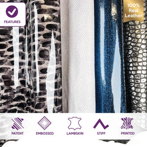 Exclusive Patent Printed Animal Embossed Metallic Lambskin Bundle of 4 Hides 0.9-1.1mm/2.25-2.75oz