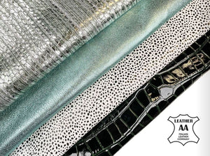 Green Patent Crocodile & Metallic Lambskin Mix Bundle of 4 Hides 0.7-1.1mm/1.75- 2.75oz