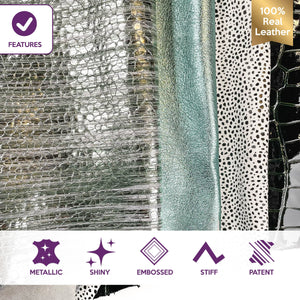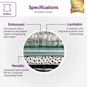High-quality lambskin leather bundle of 4. Includes the softest sheepskin leather, beautiful metallics, and unique embossing.
