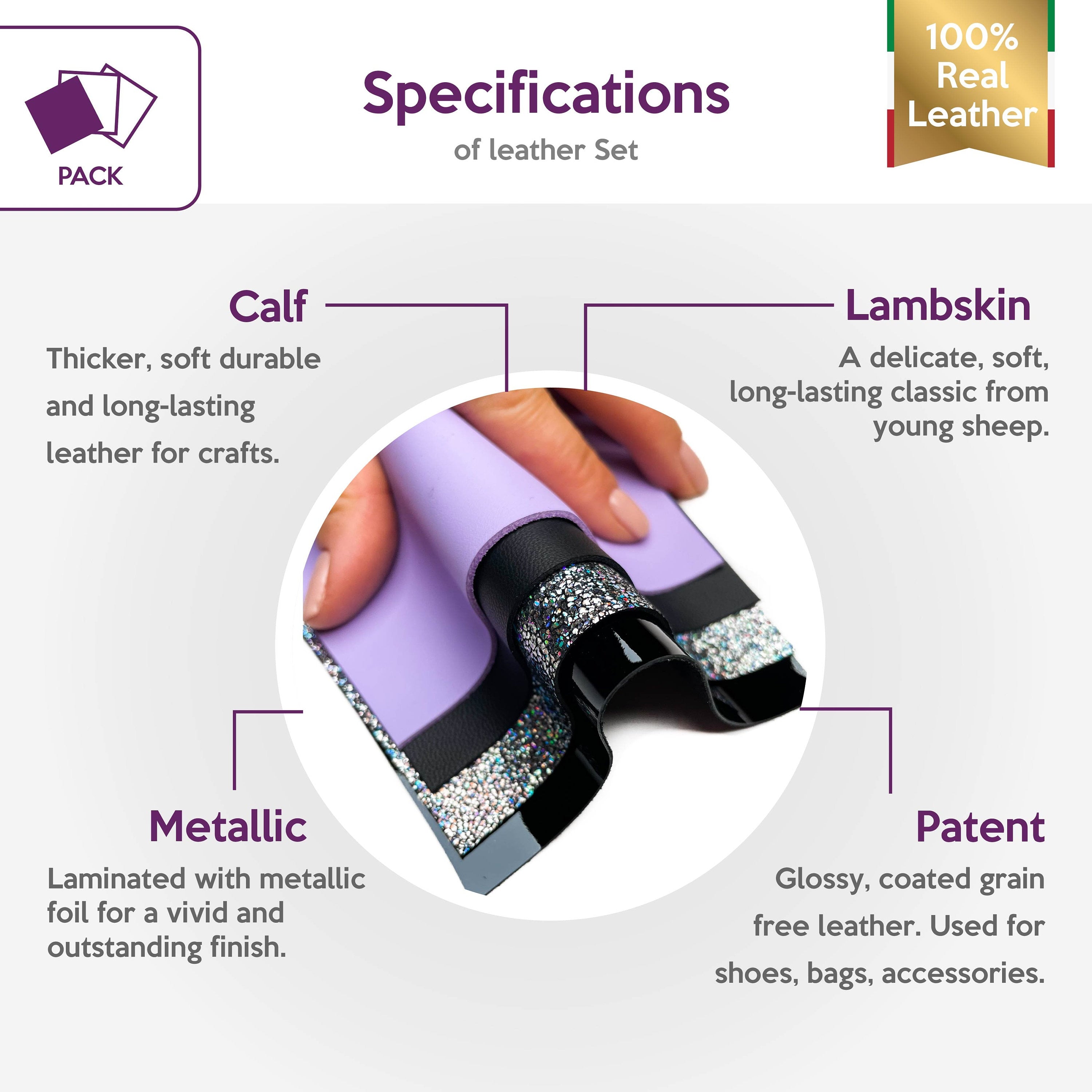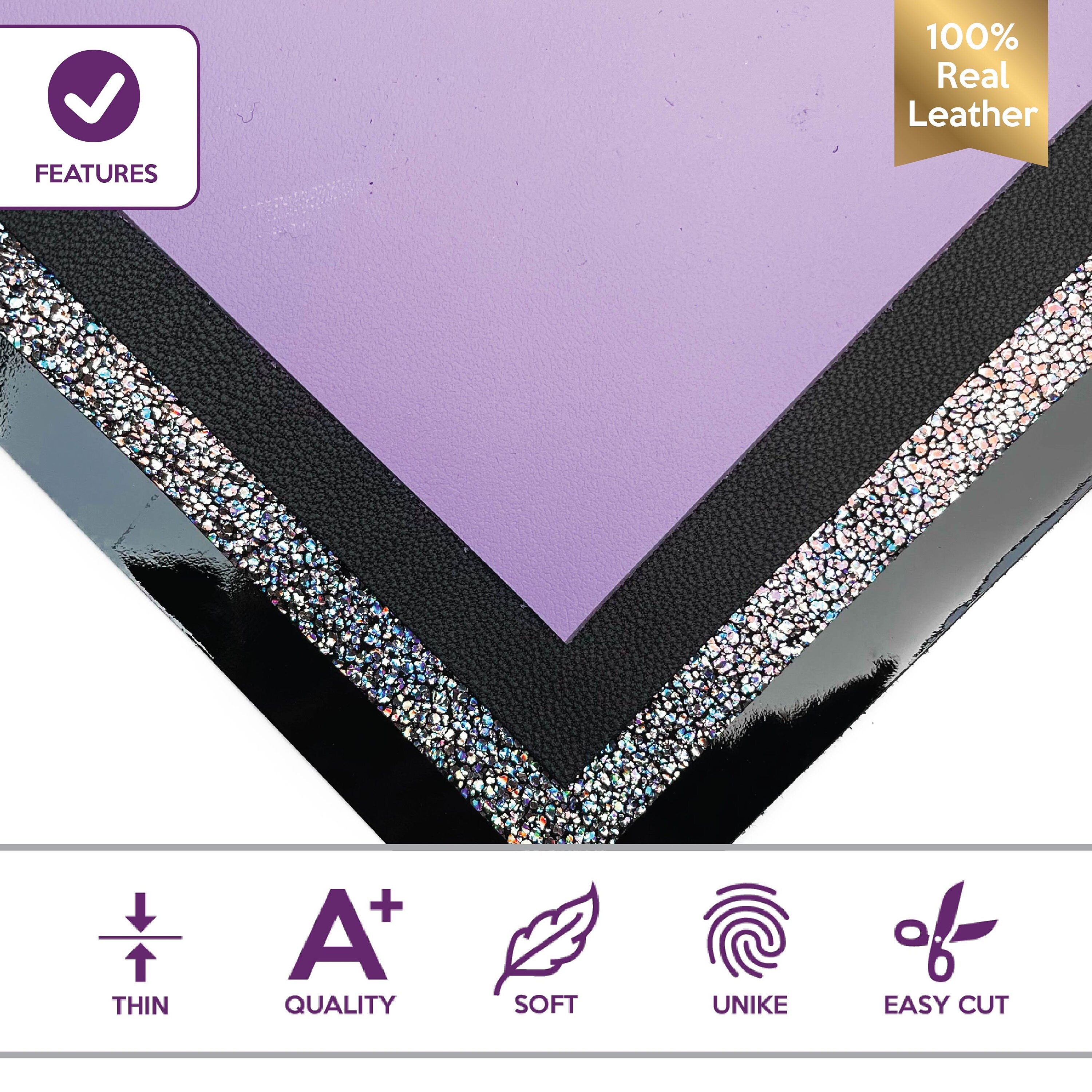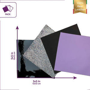 Four Leather pcs 5x5in - Lavander, Black Patent, Silver Metallic