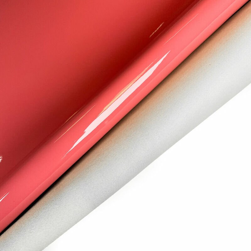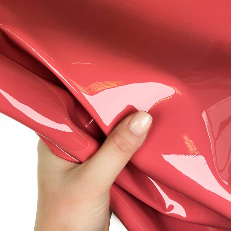- Rose red color leather. Shiny lacquer leather pieces. Glossy lambskin fabric material. Backside is light beige. Perfect leather for sewing skirts, pants, jackets.