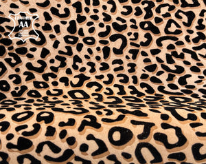 Beige 3D Sheepskin Suede Lambskin With Velour Leopard Print 0.8-1.2mm/ 2-3oz