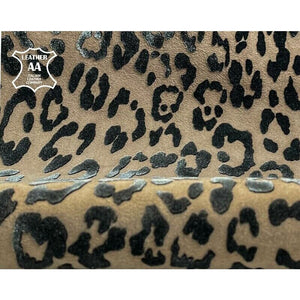 - Soft beige suede leather with unique velvet material leopard spots. Really soft to touch. Bit thick but easy to fold. Natural lambskin hides from the best Italian tannery. Perfect leather for sewing and crafting.