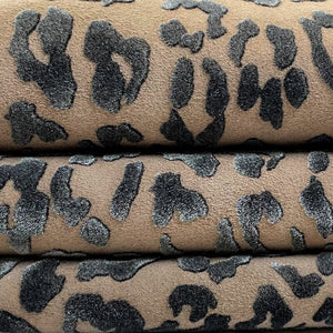 Beige Suede Leopard Print Lambskin 1.1 mm/ 2.75 oz / VELOUR LEOPARD 1373