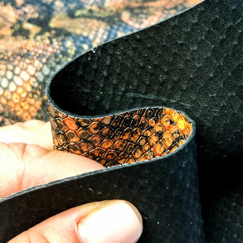 Black Orange Snakeskin Print Lambskin 0.9mm/2.25oz / DESERT SNAKE 980