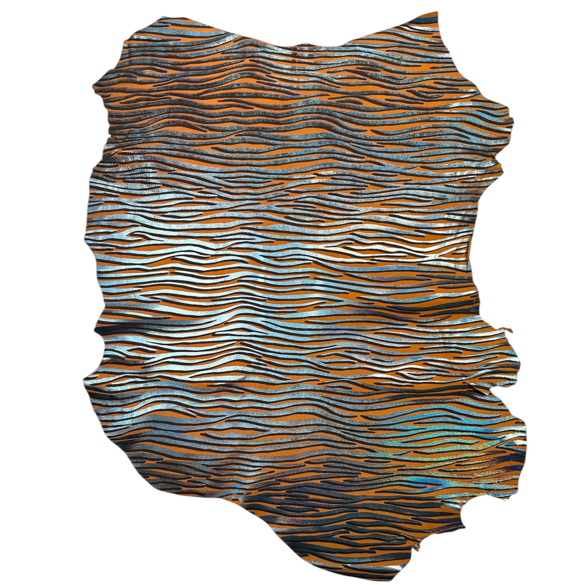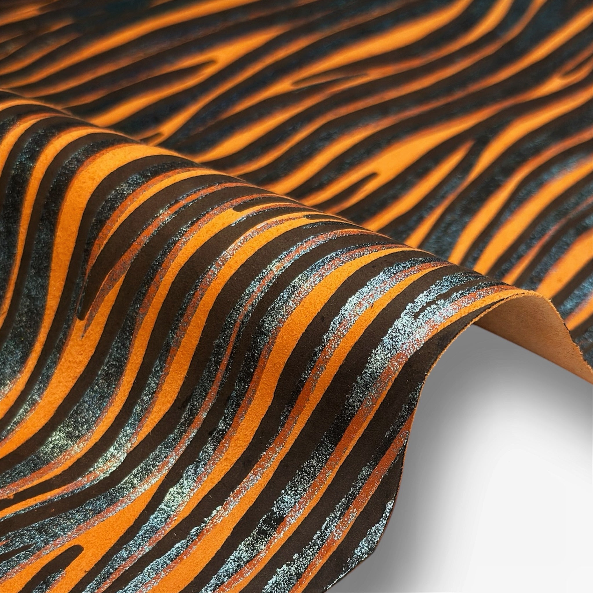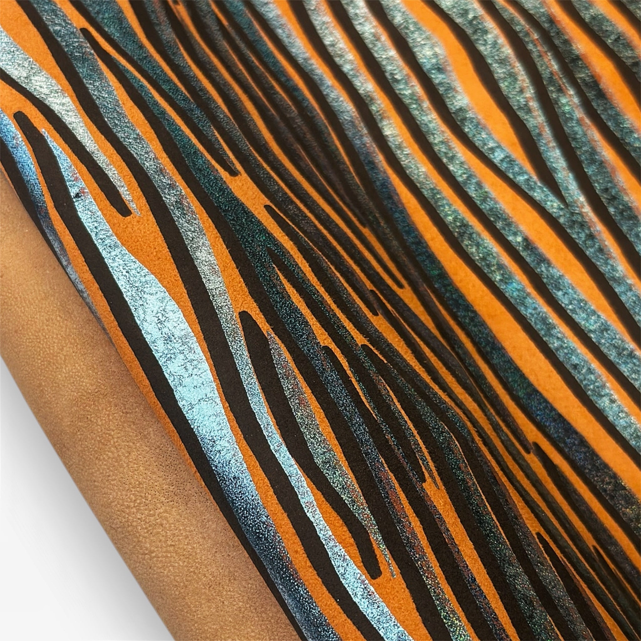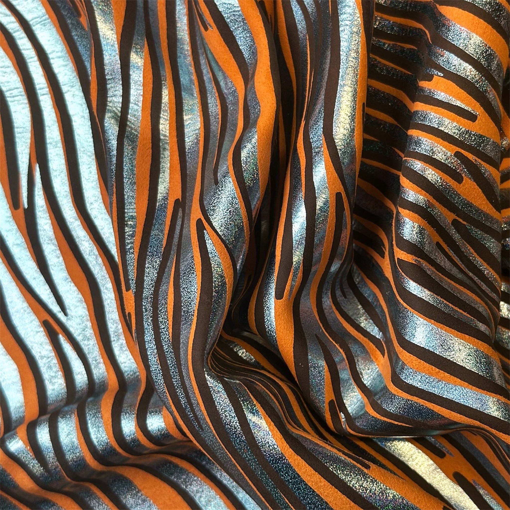 Orange Suede Lambskin With Silver And Black Zebra Print 0.9-1mm/2.25-2.5oz ORANGE ZEBRA 1547