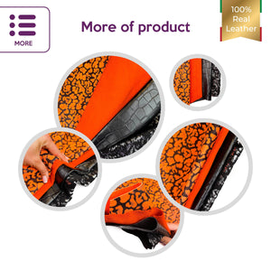 Embossed Black & Neon Orange Printed Lambskin Bundle of 4 Hides