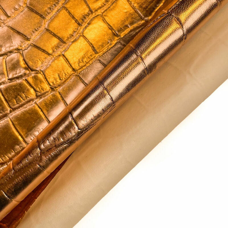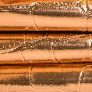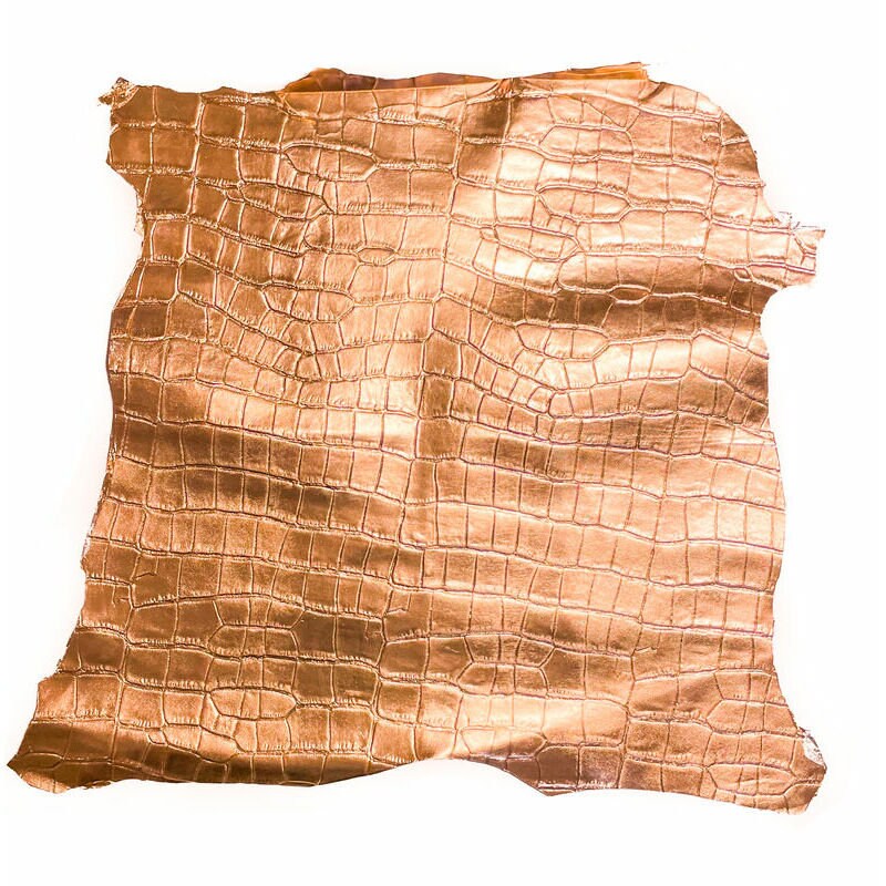 - Rose Gold metallic sheepskin leather with alligator print. Crafting pieces for sewing. Perfect embossed leather for jewelry. DIY leather.