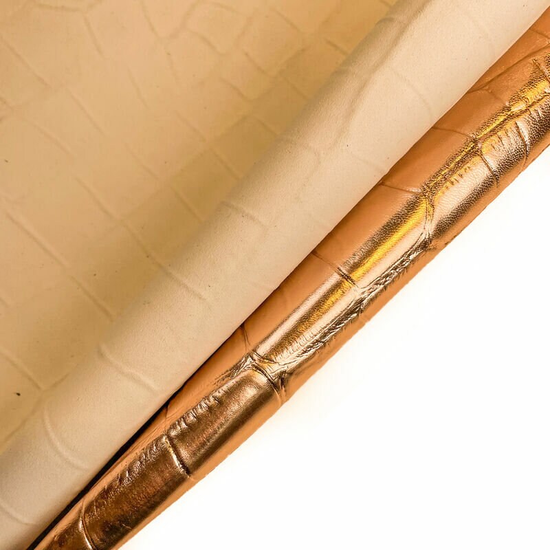High-quality lambskin leather fabric hides in rose gold color. Amazing crocodile print for your best projects! Our mission is to provide only the best quality Italian leather samples to other leather workers, crafters of all kinds, small businesses or Etsy shop for your own projects.