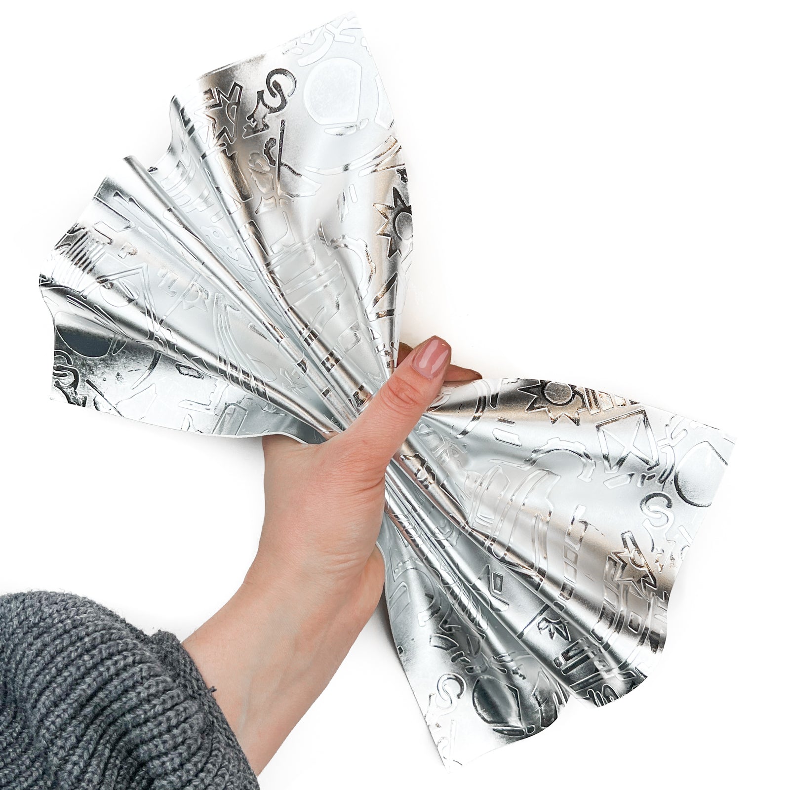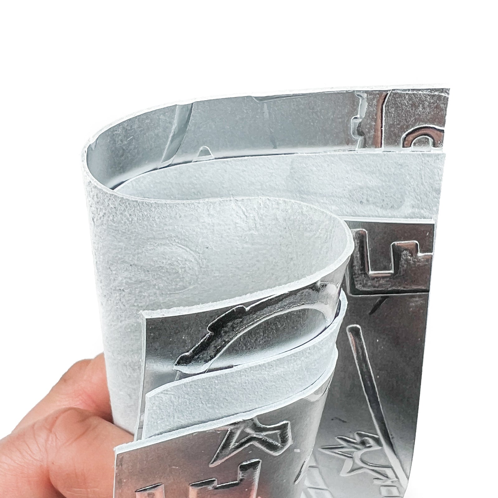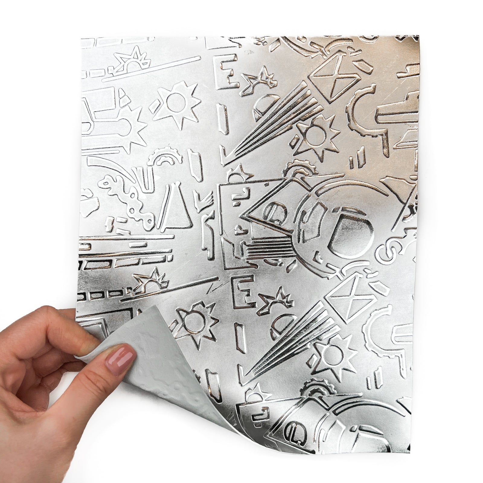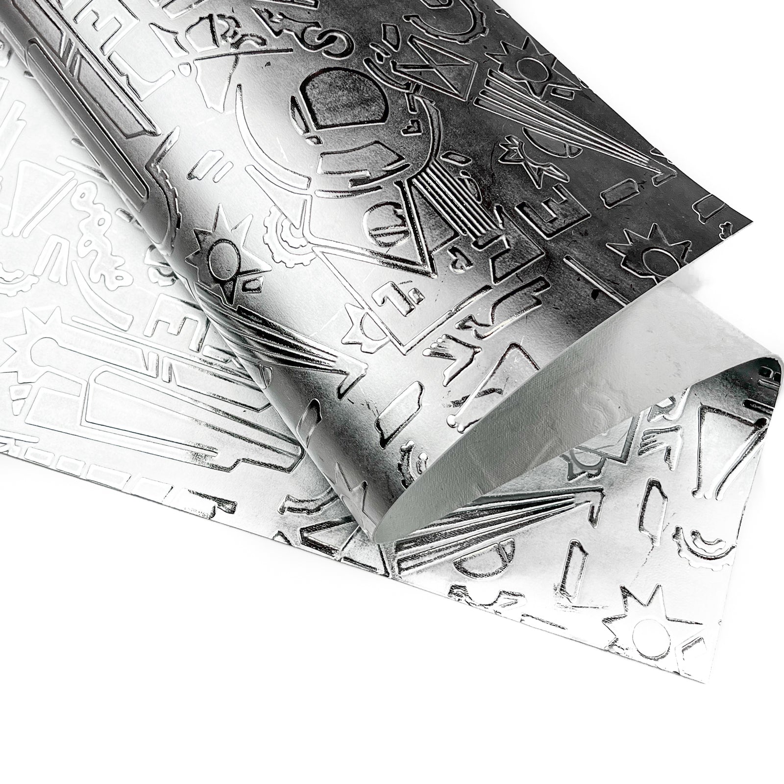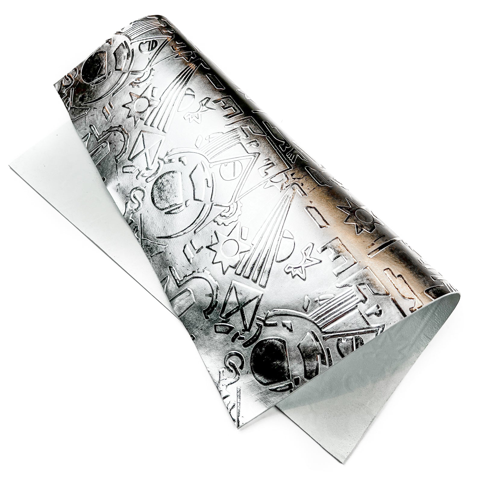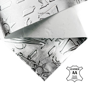 Shiny metallic silver lambskin leather sheets with embossed galaxy print!