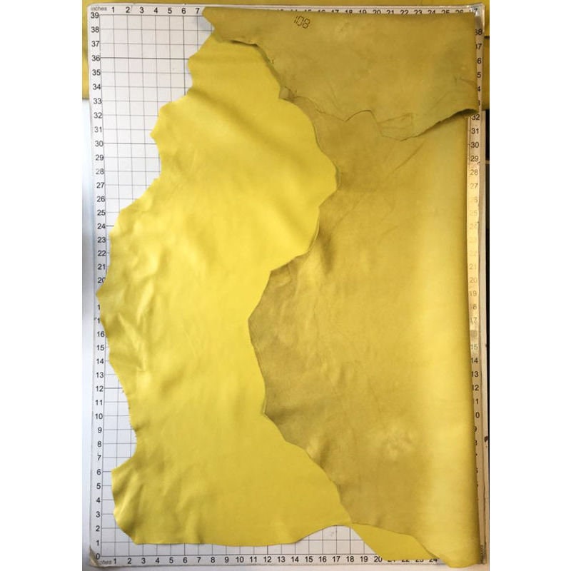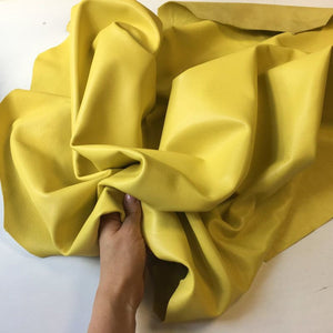 Yellow lambskin leather for sewing, leather pieces, textured leather
