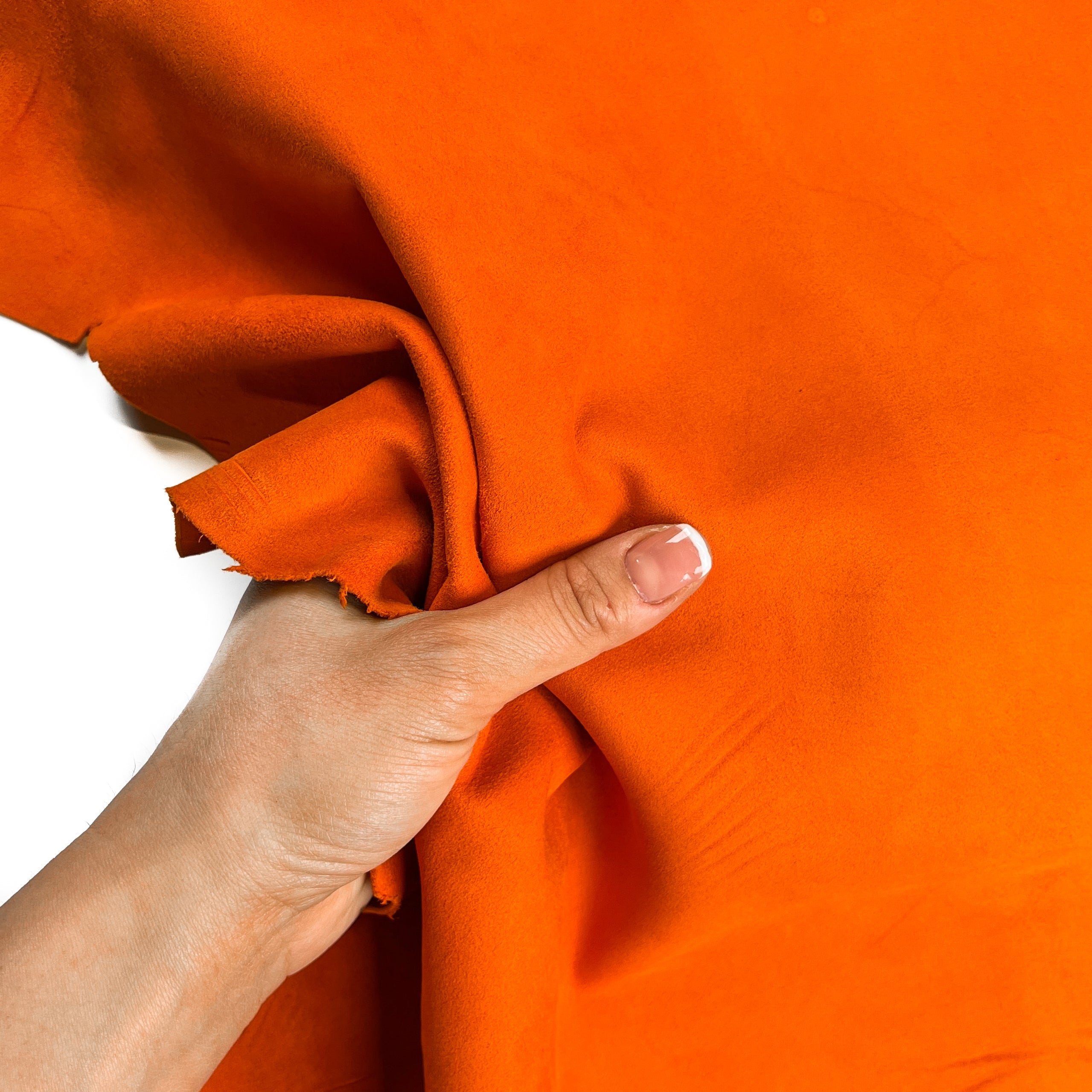 Beautiful, smooth and premium orange sheepskin suede with a leather-like back side. Perfect for accessories, shoes, and apparel. Our mission is to provide only the highest quality Italian leather to other leather workers, crafters of all kinds, small businesses, or shops for your own projects.